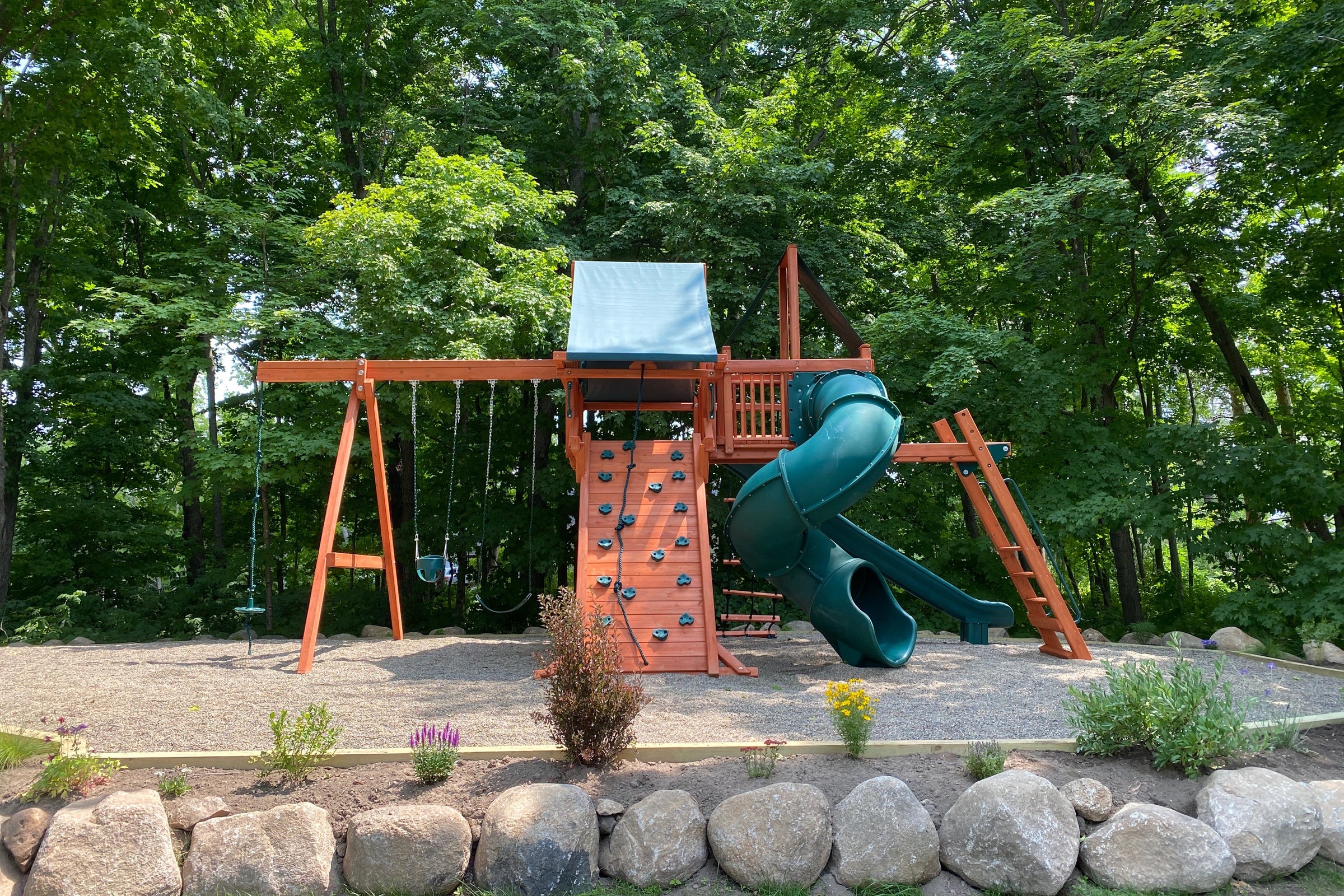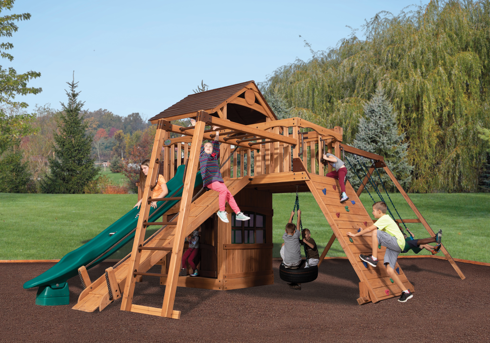 Stop by and check out our full selection of premium wooden swing sets, indoor and outdoor game floor tiles, indoor and outdoor basketball hoops, and floor coatings!